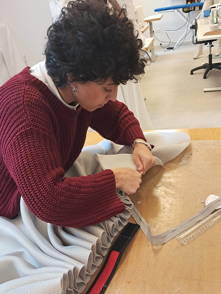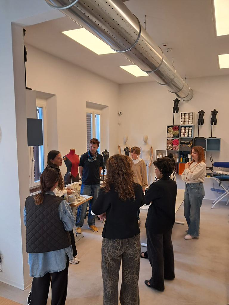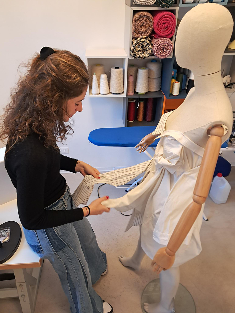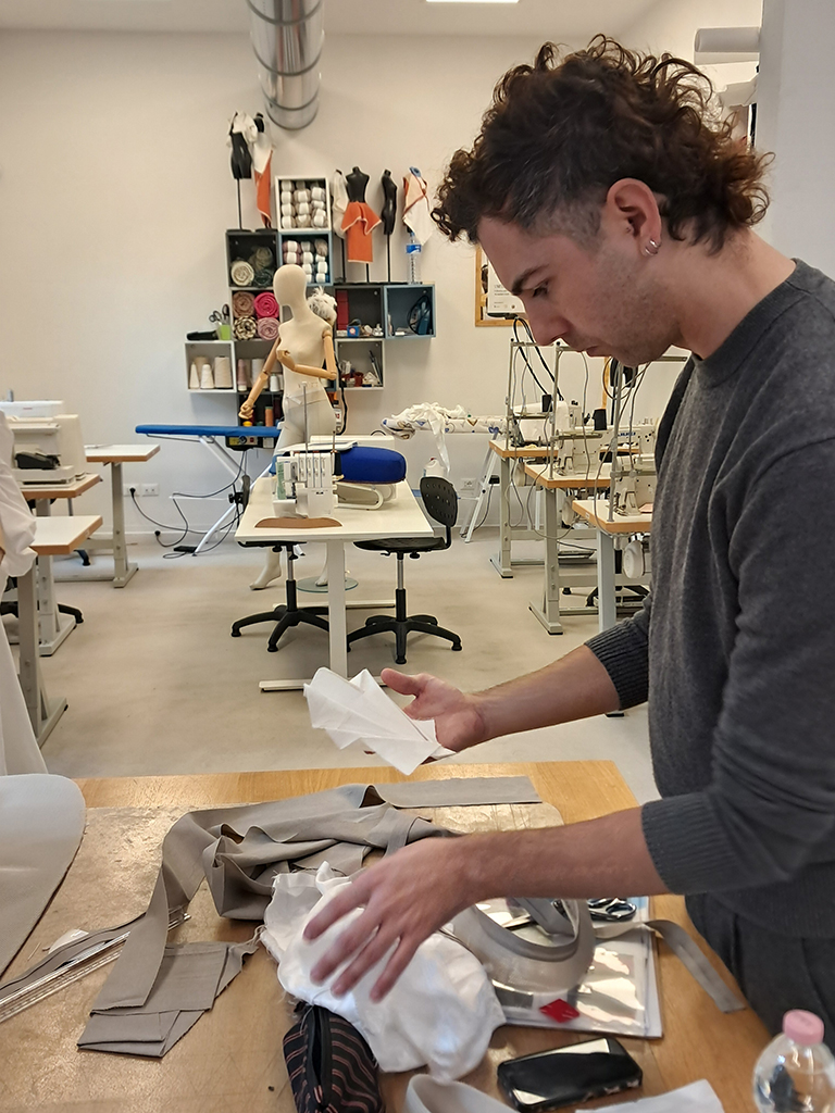 Ha saputo coniugare teoria e pratica, guidando gli studenti in un viaggio creativo partito dalla definizione di un moodboard progettuale e proseguito attraverso l’apprendimento di tecniche innovative come il drappeggio zero waste, lo studio della merceologia tessile e i primi passi nel design digitale 3D. Il fulcro dell’attività didattica si è concentrato sulla modellistica tradizionale, applicata però in modo inedito a capi vintage decontestualizzati e tessuti dismessi.